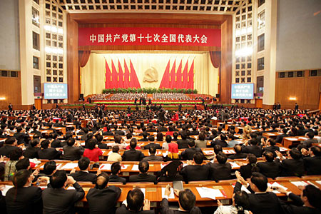 10月21日九時(shí),中國(guó)共產(chǎn)黨第十七次全國(guó)代表大會(huì)閉幕會(huì)開始在北京人民大會(huì)堂舉行。