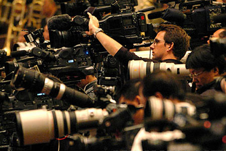 正在北京召開的中國(guó)共產(chǎn)黨第十七次全國(guó)代表大會(huì)吸引了世界的目光,國(guó)內(nèi)外媒體持續(xù)報(bào)道大會(huì)相關(guān)消息,在會(huì)場(chǎng)內(nèi)外、新聞中心、代表駐地,到處活躍著記者們忙碌的身影。