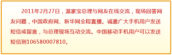 [中國移動(dòng)手機(jī)報(bào)讀者手機(jī)尾號7917]:總理好,我是一個(gè)即將畢業(yè)的大學(xué)生,我的愿望是找到一份工作。 |