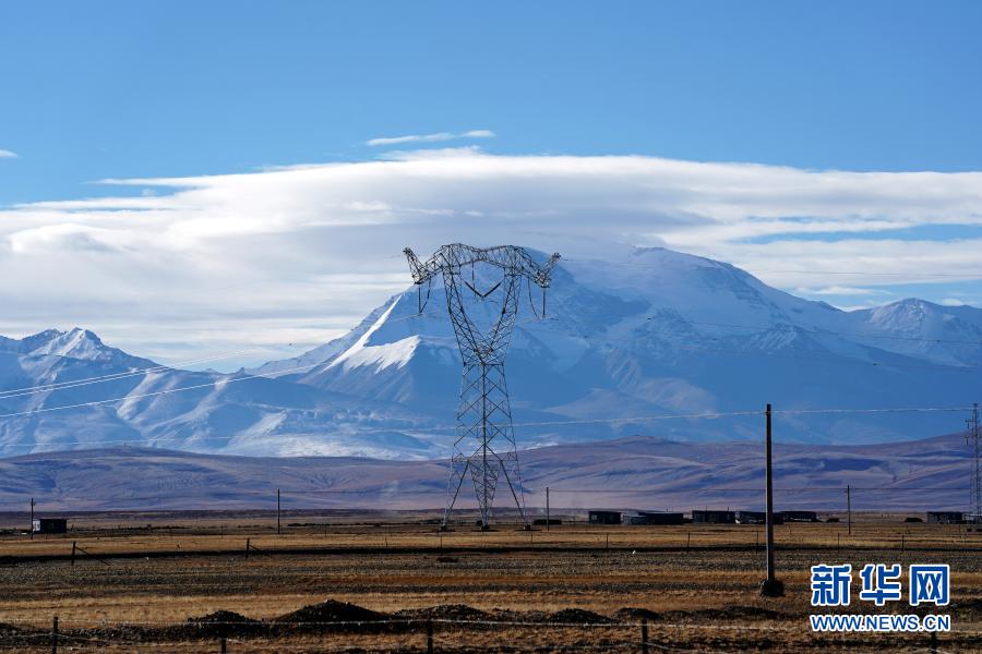 這是2020年11月29日在西藏阿里地區(qū)普蘭縣拍攝的西藏阿里與藏中電網(wǎng)聯(lián)網(wǎng)工程輸電鐵塔。新華社記者 詹彥 攝