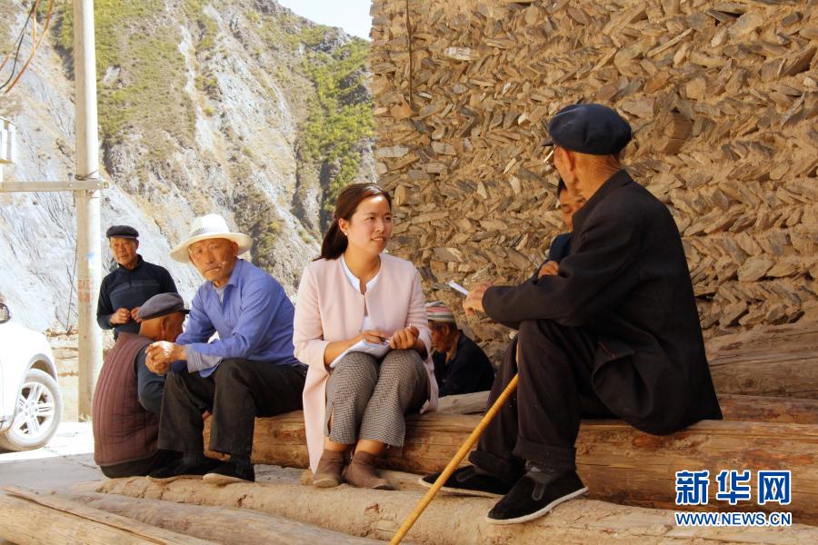 甘肅省甘南藏族自治州舟曲縣扶貧辦副主任張小娟(右二)在下鄉(xiāng)時向群眾了解情況(2018年4月攝)。2019年10月7日,時任縣扶貧辦副主任的張小娟在完成曲告納鎮(zhèn)上大年村脫貧攻堅縣級抽樣調(diào)查工作后,返程途中所乘車輛不慎墜江,因公殉職。新華社發(fā)