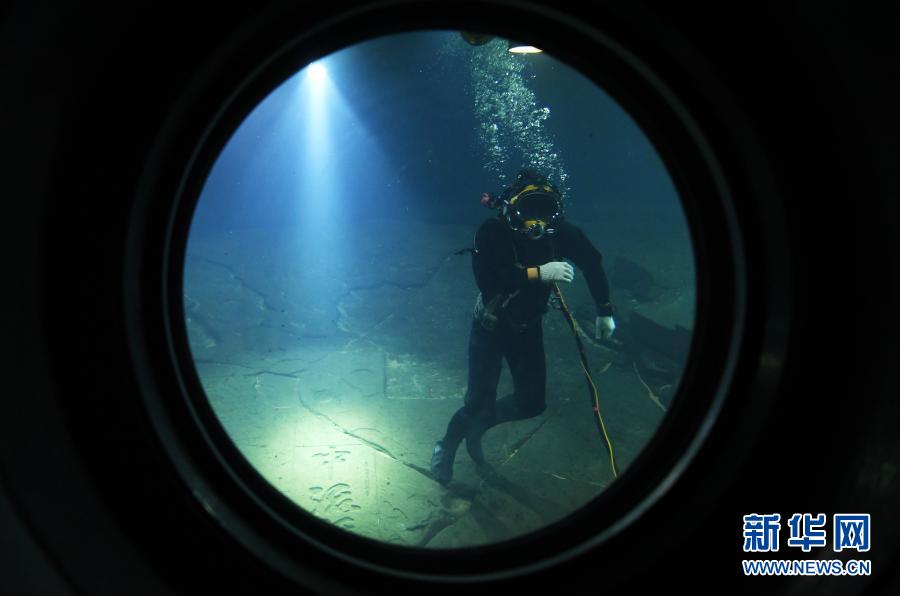 3月15日,在長江水下40多米的白鶴梁題刻無壓容器罩內(nèi),潛水員在進(jìn)行清理作業(yè)。新華社記者 王全超 攝