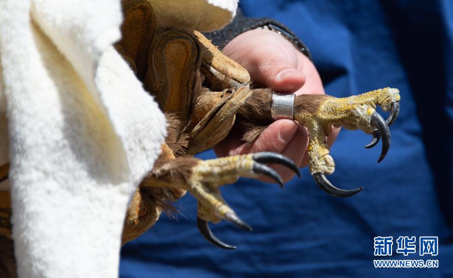 這是3月20日拍攝的佩戴在一只大鵟腳上的環(huán)志。新華社記者 陳鐘昊 攝