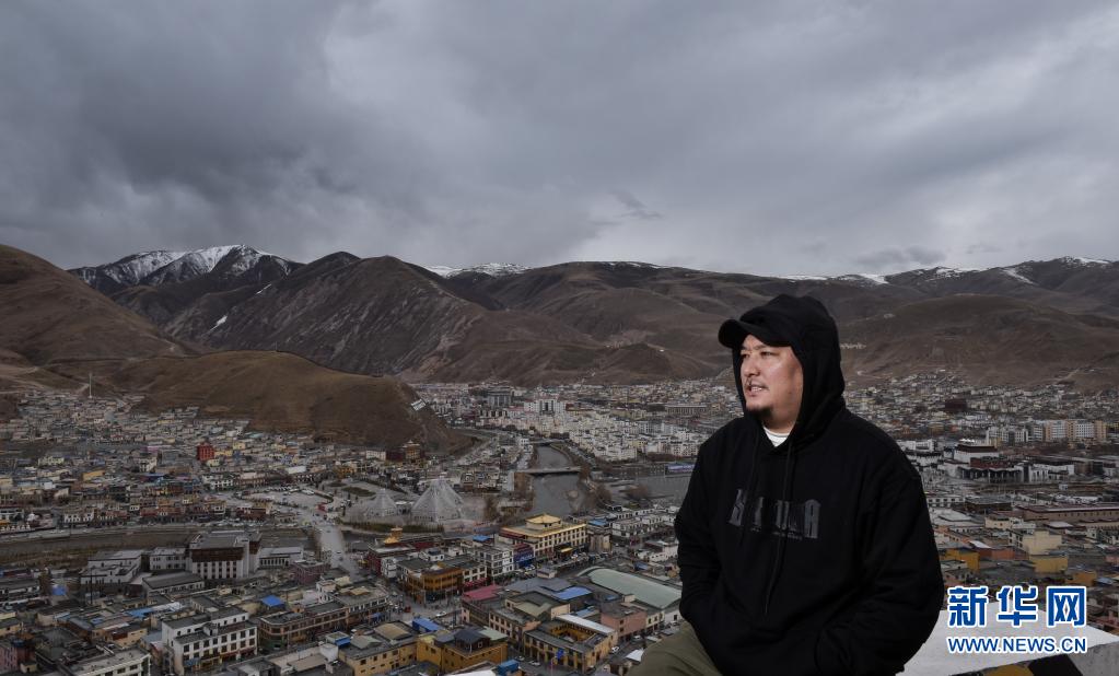 才仁俄賽在餐廳創(chuàng)作音樂(4月12日攝,手機照片)。新華社記者 劉江 攝