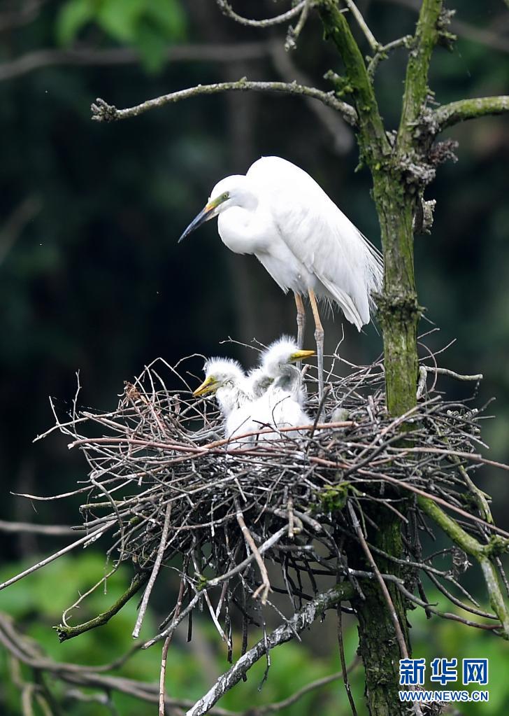 在南昌市新建區(qū)象山森林公園內(nèi),白鷺和雛鳥們在一起(5月18日攝)。