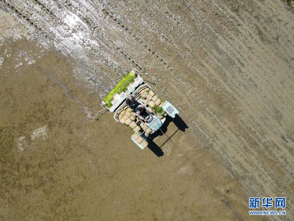 進(jìn)入5月,新疆溫宿縣的11萬余畝水稻進(jìn)入插秧期。稻田間,插秧機(jī)往來穿梭,一片繁忙景象。