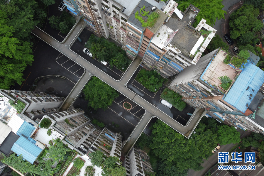 繼輕軌穿樓、高鐵穿樓、“貓頭鷹”立交橋之后,重慶又一建筑走紅網(wǎng)絡。近日,有網(wǎng)友發(fā)現(xiàn),重慶渝中區(qū)一個老小區(qū)幾棟居民樓的4樓中間,建起了連接各個單元的空中走廊,居民出入猶如空中漫步。新華網(wǎng) 耿駿宇 攝