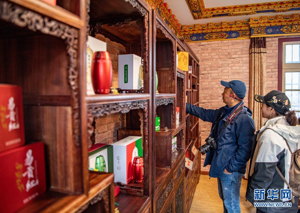 拉薩市北京路,崗堅(jiān)茶葉股份有限公司門(mén)店內(nèi),一些造型獨(dú)特、包裝各異的茶葉產(chǎn)品吸引著顧客。