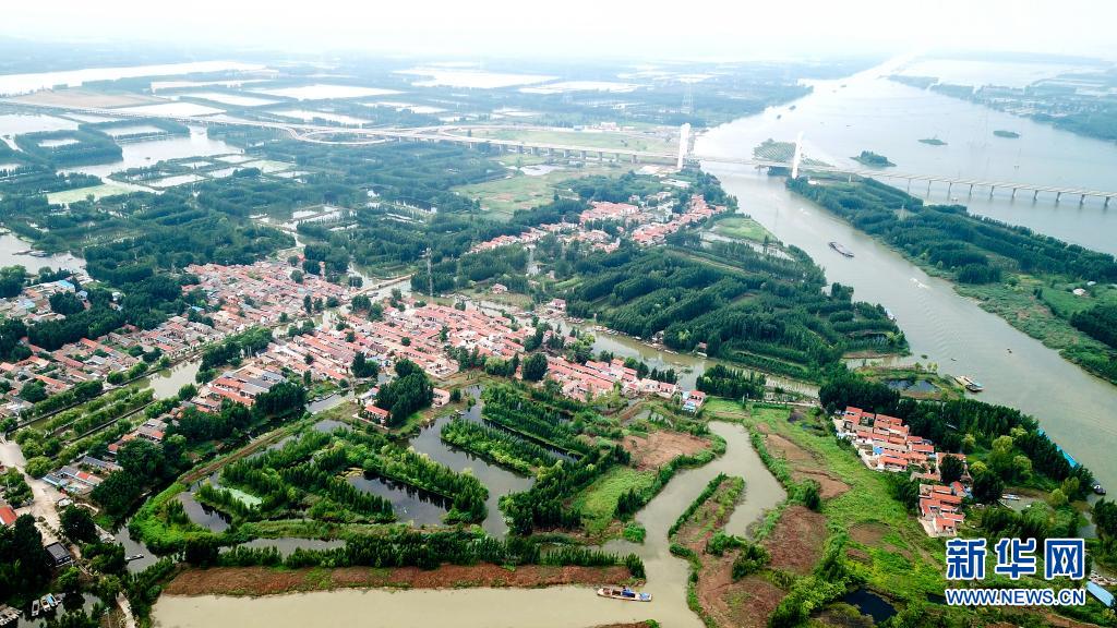 這是郵遞員王少朋服務(wù)的微山縣南陽鎮(zhèn)一角,南陽鎮(zhèn)四面環(huán)水,交通不便(6月20日攝,無人機照片)。