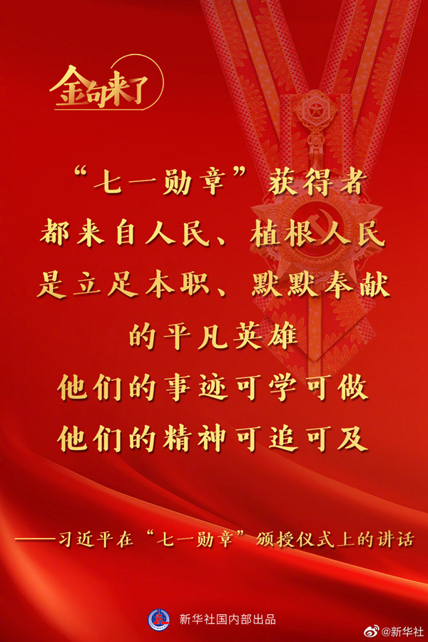 習(xí)近平說,“七一勛章”獲得者都來自人民、植根人民,是立足本職、默默奉獻(xiàn)的平凡英雄。他們的事跡可學(xué)可做,他們的精神可追可及。他們用行動證明,只要堅定理想信念、堅定奮斗意志、堅定恒心韌勁,平常時候看得出來、關(guān)鍵時刻站得出來、危難關(guān)頭豁得出來,每名黨員都能夠在民族復(fù)興的偉業(yè)中為黨和人民建功立業(yè)!