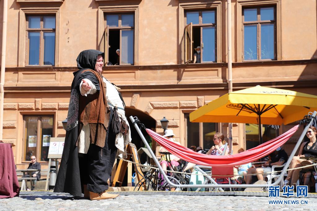 芬蘭古城圖爾庫(kù)于7月1日至4日舉行“中世紀(jì)市集”活動(dòng)。人們身著中世紀(jì)風(fēng)格服裝售賣貨品,表演短劇、馬戲和歌舞。