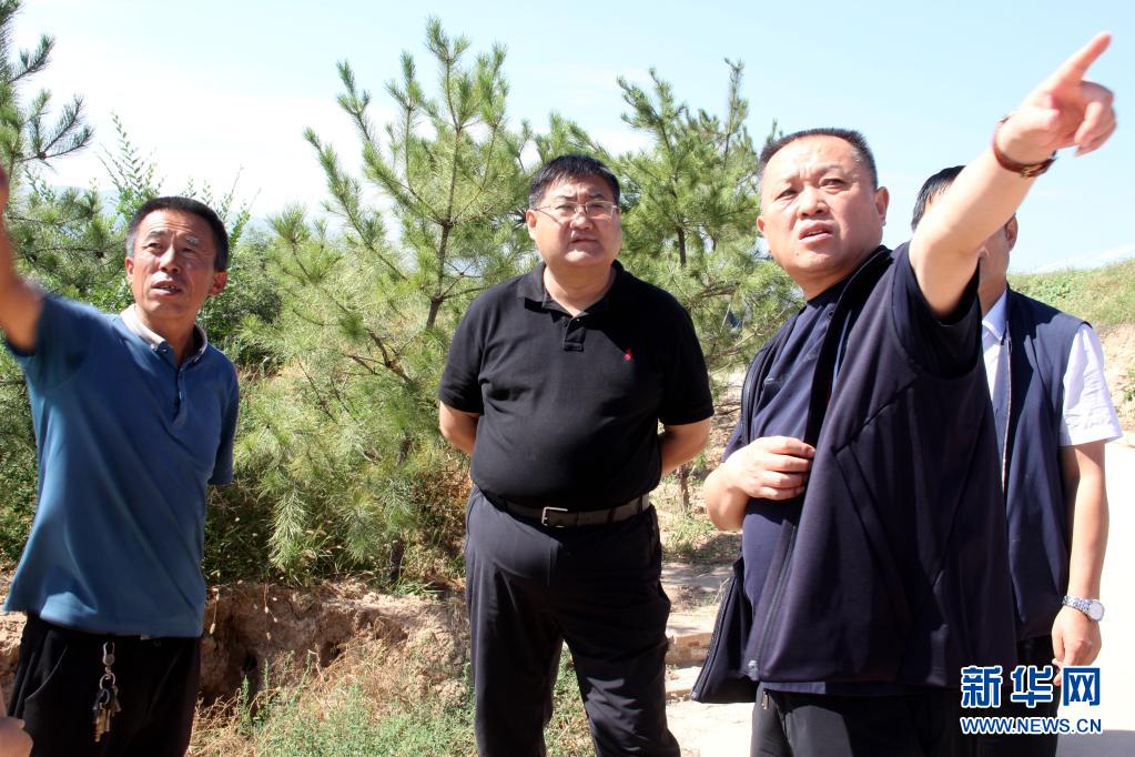 劉偉(左二)在太谷區(qū)西曲河旱垣溫室調(diào)研(2020年9月6日攝)。新華社發(fā)