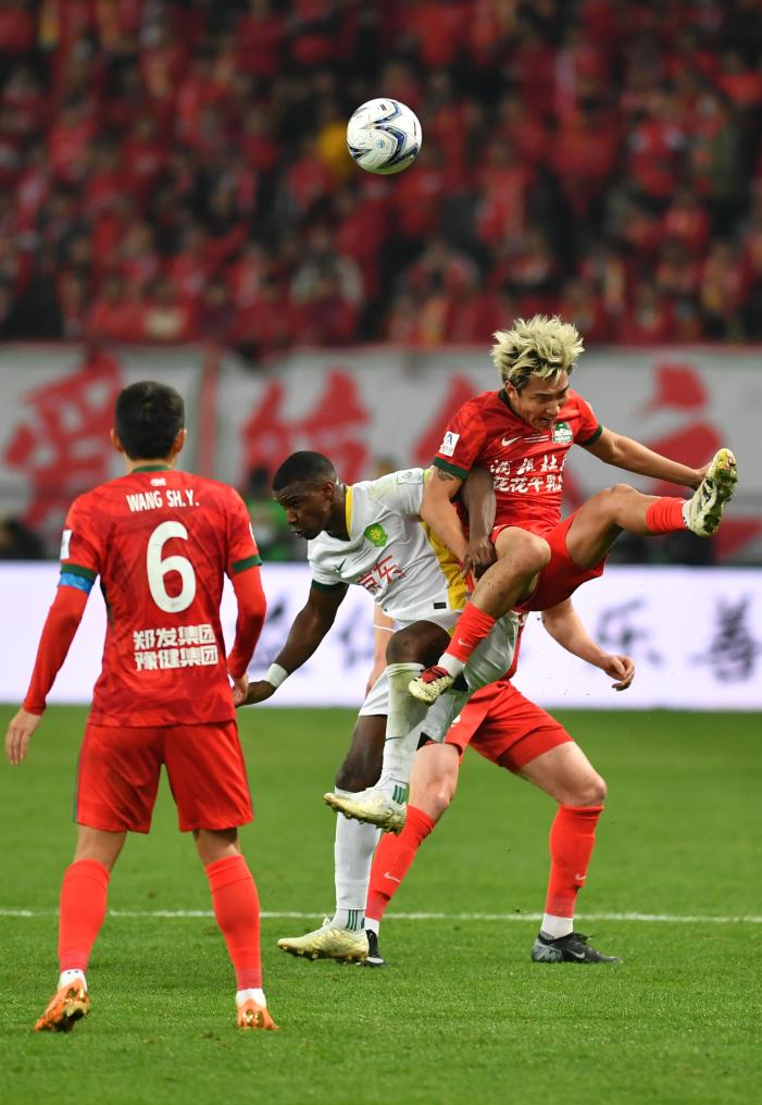 △12月6日,在2025中国足球协会杯决赛中,河南队球员黄锐烽(右)争抢头球。新华社记者 李嘉南 摄