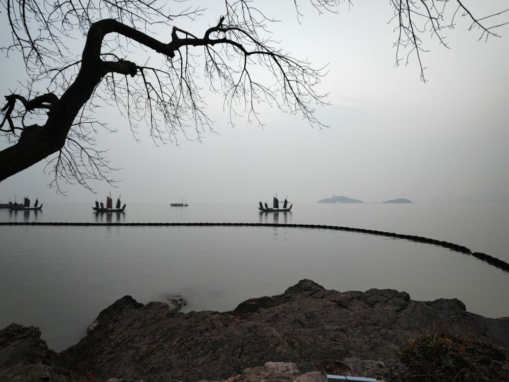 当我立于无锡鼋头渚,冬日的薄暮正笼罩着太湖。岸边苦楝树的黝黑枝丫,瘦硬如铁,静静探向湖中。偶有夜鹭独立浅滩,如一幅定格的剪影。湖心帆影淡似墨痕,远处山峦在渐暗的天光里被晕成青灰色,眼前这一切,犹如一幅自然天成、静谧深远的水墨画。