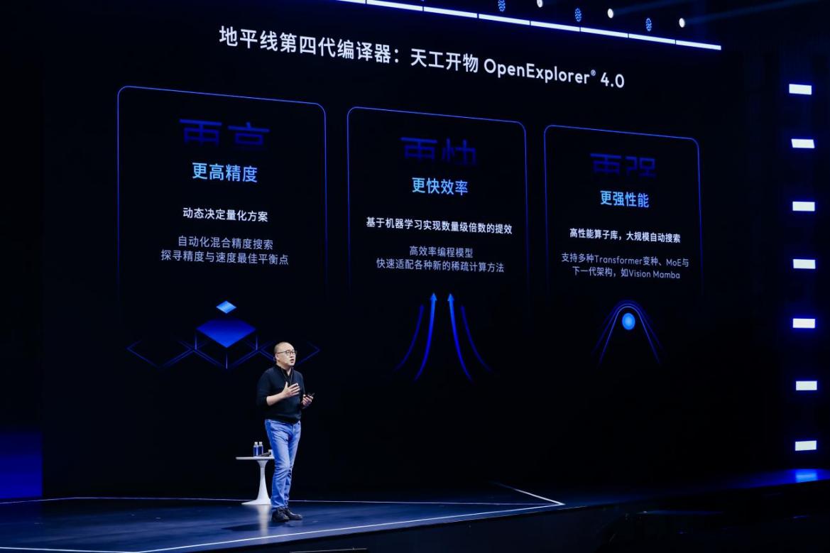 编译器持续进化,全面进入“AI驱动编译”时代。作为交响乐的指挥,地平线的编译器技术同样经历了三代迭代。本次发布的第四代编译器天工开物OpenExplorer®4.0,实现了更高精度、更快效率和更强性能的突破,编译速度从小时级提升至分钟级,模型性能提升20%。其革命性在于引入了AI驱动的优化策略,标志着编译器技术从工具自动化,迈向了基于机器学习的自我进化新时代。