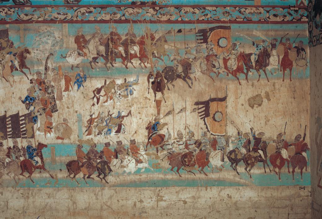 莫高窟第249窟的狩猎图。新华社发