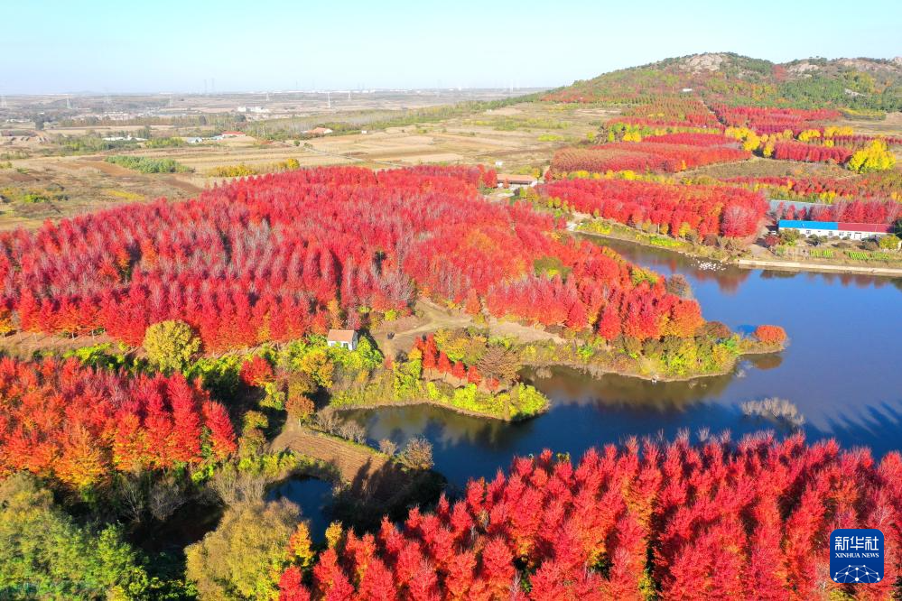 11月2日在山东省青岛市即墨区金口镇拍摄的枫树林(无人机照片)。
