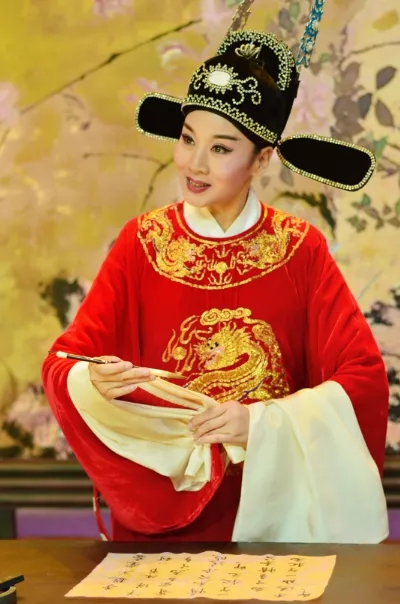 提到黃梅戲,經(jīng)典名劇《女駙馬》是不可不提的重要作品。這部劇是黃梅戲最為著名的代表之一,塑造劇中“馮素珍”這個角色,需要表演者具備極強(qiáng)的專業(yè)功底與豐富的表演經(jīng)驗。尤其是女扮男裝中狀元的這一場戲,演員要時刻注意心境的轉(zhuǎn)換,旦行與生行的靈活切換,采用戲曲程式化的動作把人物內(nèi)心戲進(jìn)行外化表現(xiàn),讓觀眾跟隨演員的情緒而動。