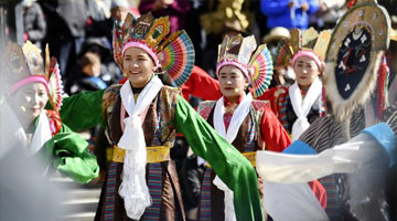 2月28日,在乌鲁木齐京剧院,演员在表演舞剧《五星出东方》。