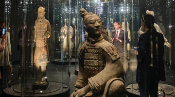 3月29日,参观者在“羊城烟火气——广州出土汉代建筑模型明器展”现场参观。