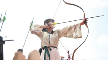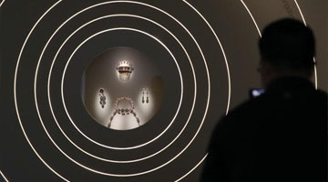4月9日,在美国纽约,一名女子参加复活节花帽游行。