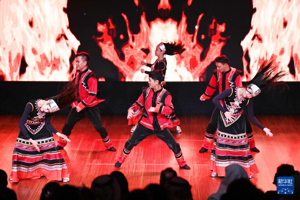 9月19日,在科威特首都省,来自中国云南省临沧歌舞团的演员表演舞蹈。