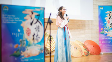 这是展出的一款龙泉宝剑作品局部(5月7日摄)。
