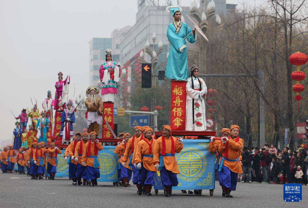 1月22日在绵竹年画节开幕式上拍摄的巡游队伍。