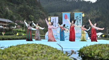 4月1日,中国石油文化艺术工作者联合会的演出人员在表演舞蹈《礼·袖》。
