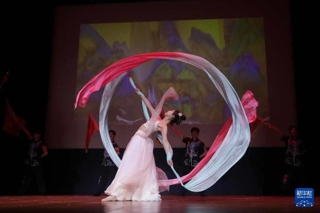 4月14日,在斯洛文尼亚皮兰市,演员表演藏族舞蹈《少年弦歌》。