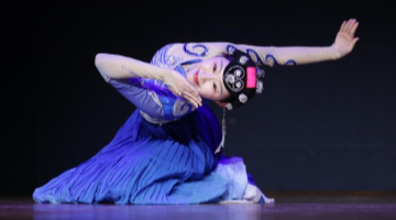 4月19日晚,天津交响乐团常任指挥易娟子在桥边音乐汇演出活动上指挥。