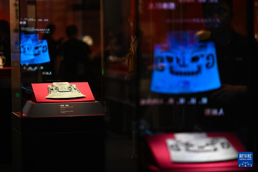 5月18日,观众在观看“中华文明起源系列展:看·见殷商”展览中的“亚醜”铜钺。