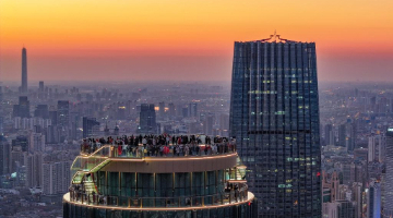 1月7日,游客在重庆市渝中区李子坝观景平台观光。