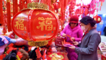 2月3日,市民在河南省开封市鼓楼区一年货市场选购春节饰品。