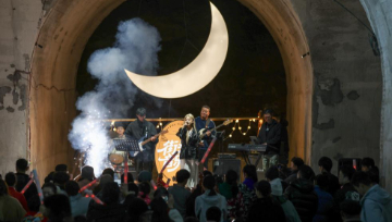 1月31日晚,湖北省宜昌市秭归县非遗传承人在九歌巷子举行龙狮巡游(无人机照片)。
