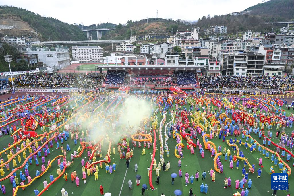 2月27日,人们在贵州省石阡县参加仡佬毛龙节舞龙展演活动。