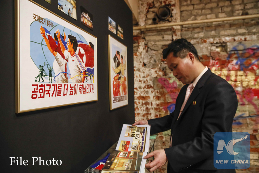 A DPRK official attends the "Made In North Korea" exhibition held at the UMAM museum in Moscow, Russia January 20, 2018. (REUTERS PHOTO)