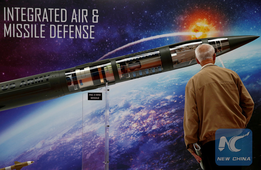 (File photo)A man looks at a Patriot Advanced Capability (PAC-3) Missile Segment Enhancement (MSE) model by Lockheed Martin at an international military fair in Kielce, Poland September 7, 2017. (Reuters photo)
