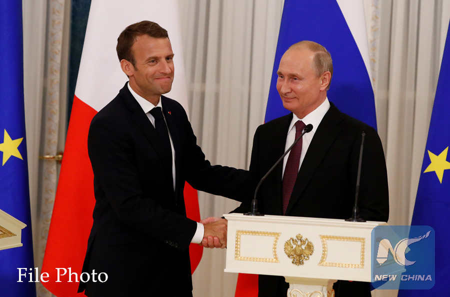 MOSCOW, July 14 (Xinhua) -- Russian President Vladimir Putin hailed Russia-France relations and prospects of their cooperation on global issues in a greeting message to his French counterpart Emmanuel Macron on the occasion of France's Bastille Day, the Kremlin said Saturday.