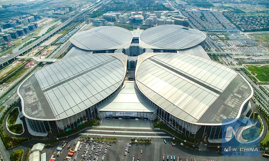 File photo shows the National Exhibition and Convention Center, the venue of the 2018 China International Import Expo (CIIE), in Shanghai, east China. (Xinhua)