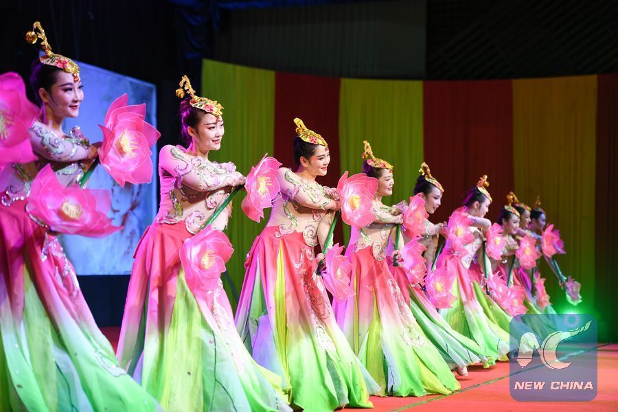 Dancers perform during the "Festival of Spring" gala held in Nairobi, capital of Kenya, Feb. 17, 2019. A grand Spring Festival gala was staged in Nairobi Sunday night for overseas Chinese and locals to celebrate the Chinese Lunar New Year. (Xinhua/Li Yan)