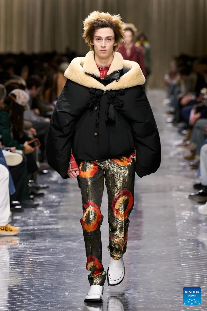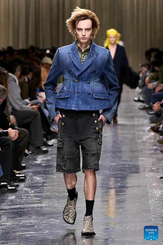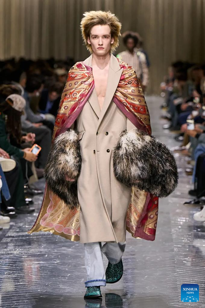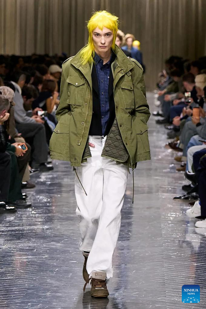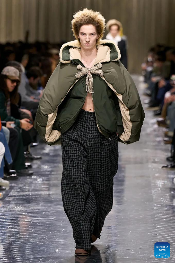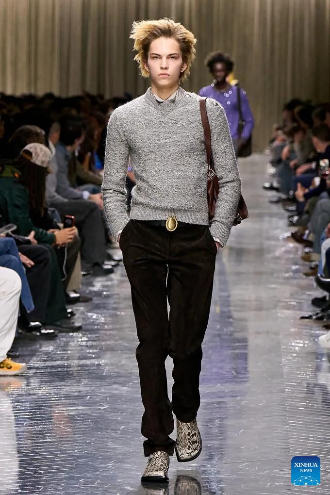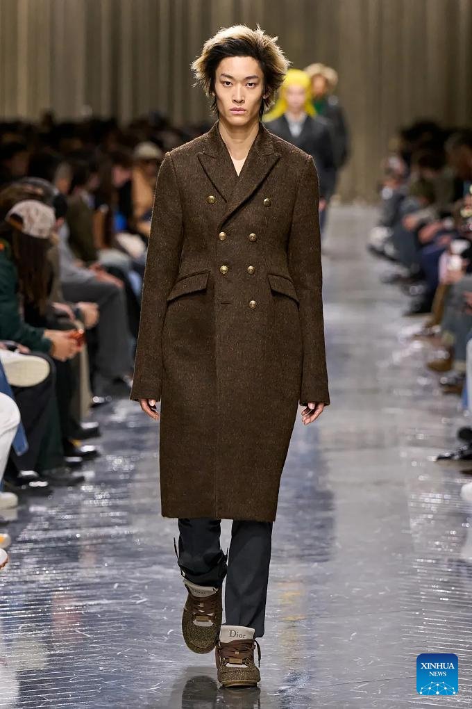 A model presents a creation from the menswear Fall/Winter 2026-2027 collections by Dior Homme during the Paris Fashion Week, in Paris, France, on Jan. 21, 2026. (MeetEurope/Handout via Xinhua)