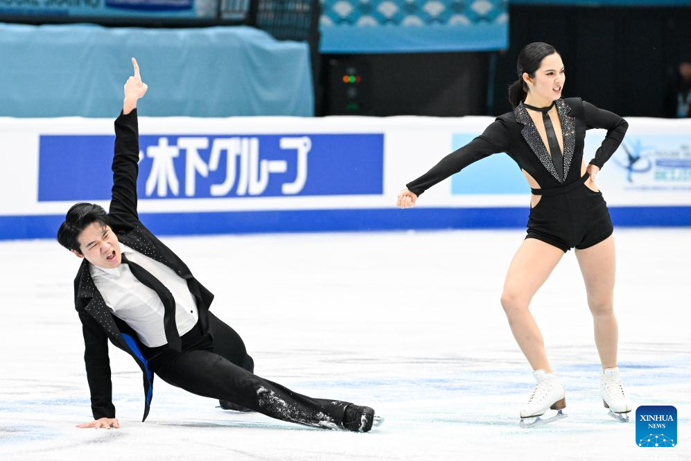 Holly Harris (R)/Jason Chan of Australia perform during the ice dance rhythm dance at the ISU Four Continents Figure Skating Championships in Beijing, China, Jan. 22, 2026. (Xinhua/Ju Huanzong)