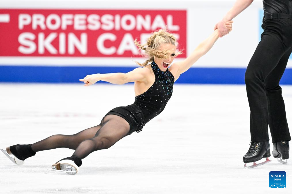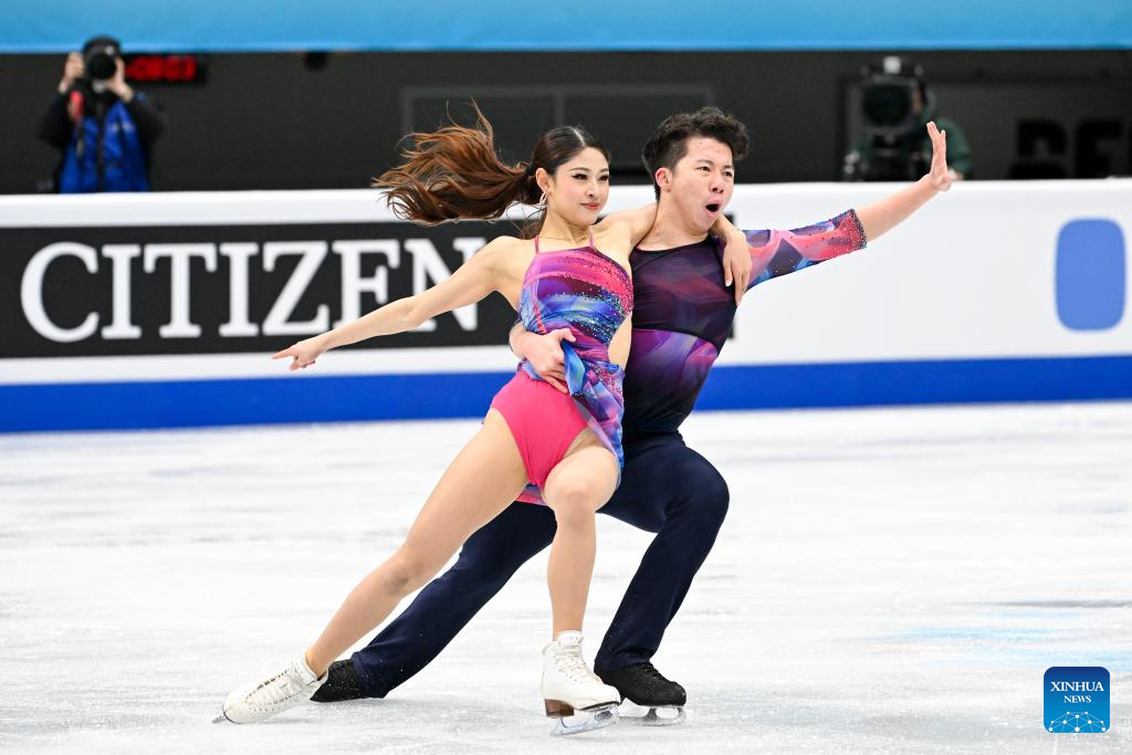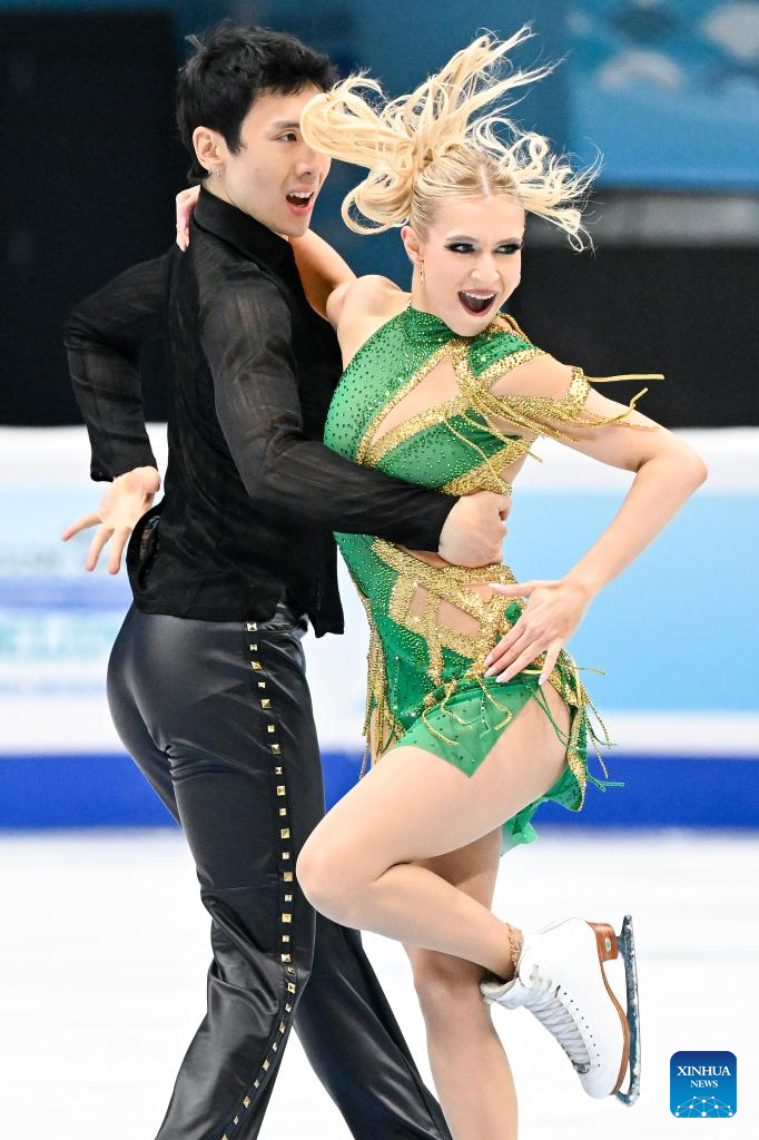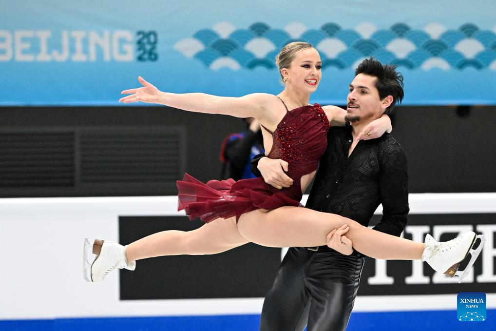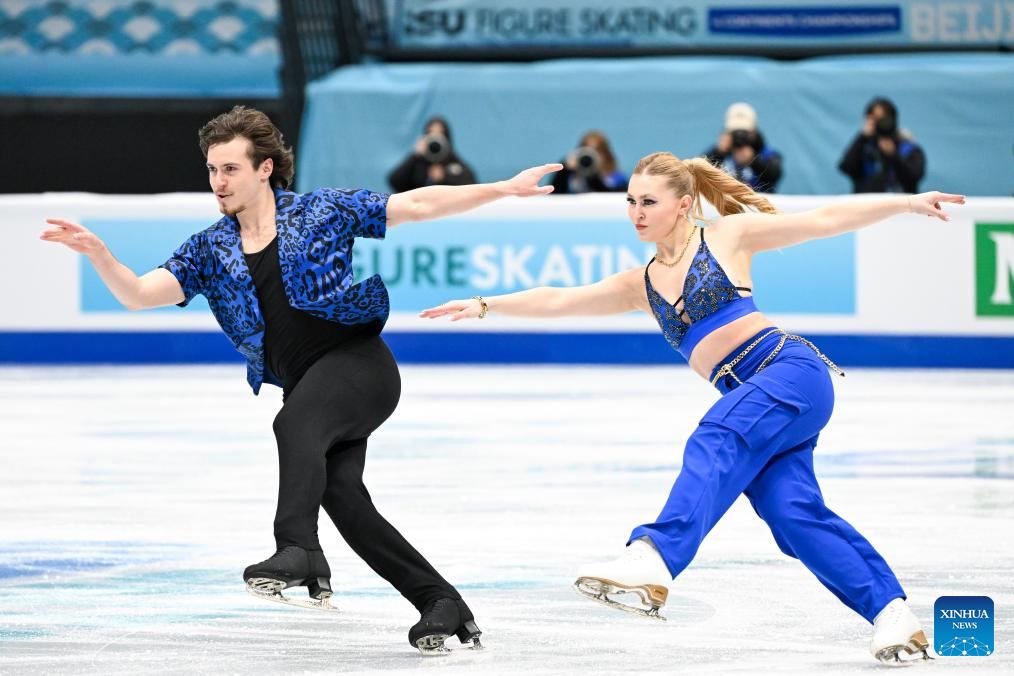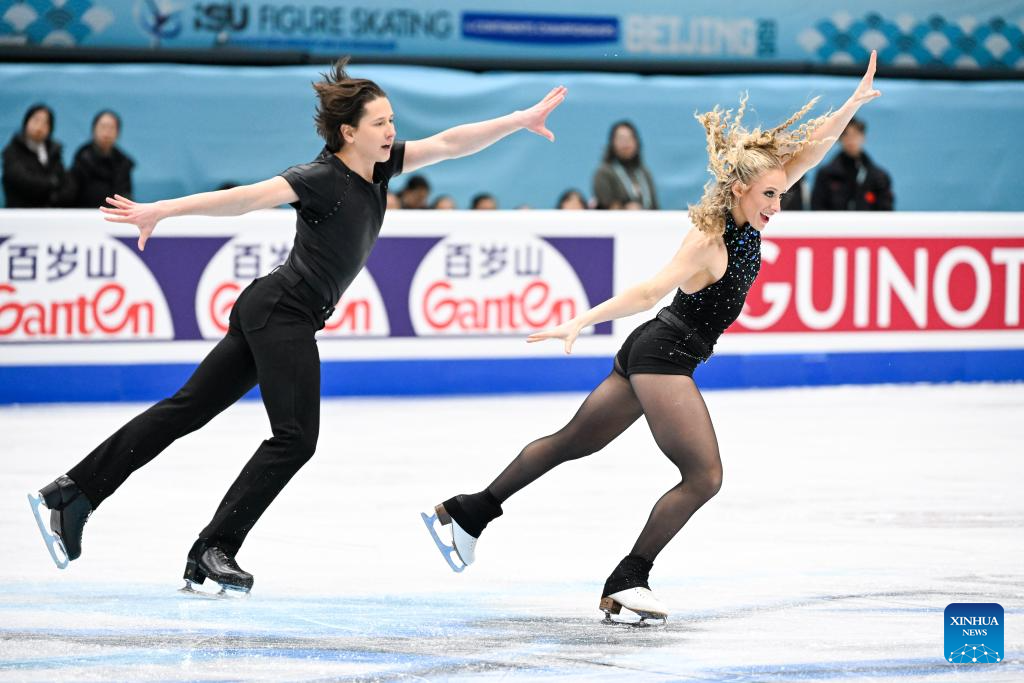 Alicia Fabbri (R) and Paul Aye of Canada perform during the ice dance rhythm dance at the ISU Four Continents Figure Skating Championships in Beijing, China, Jan. 22, 2026. (Xinhua/Ju Huanzong)