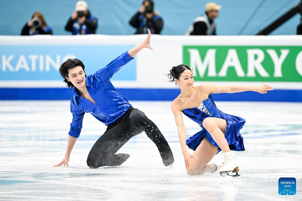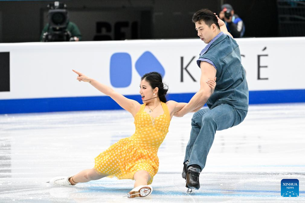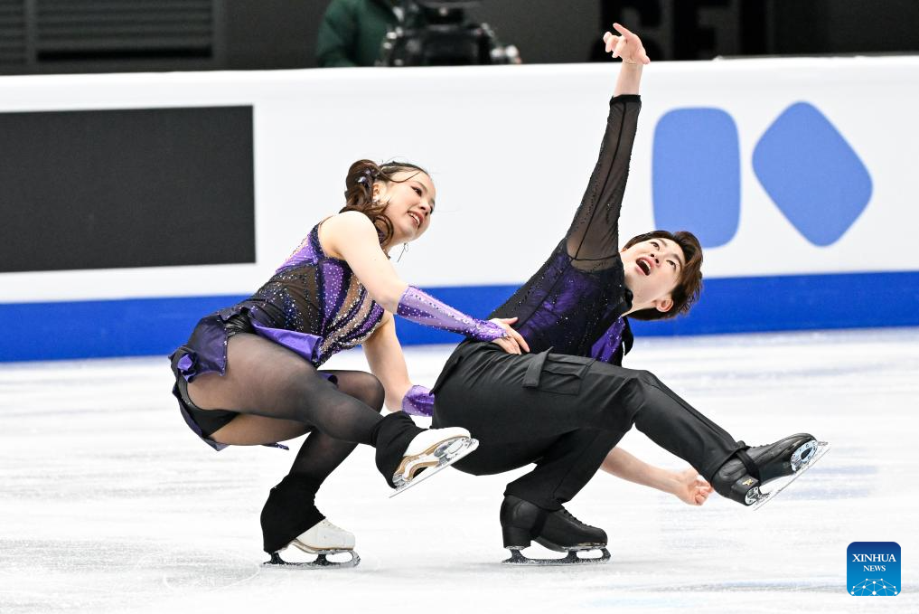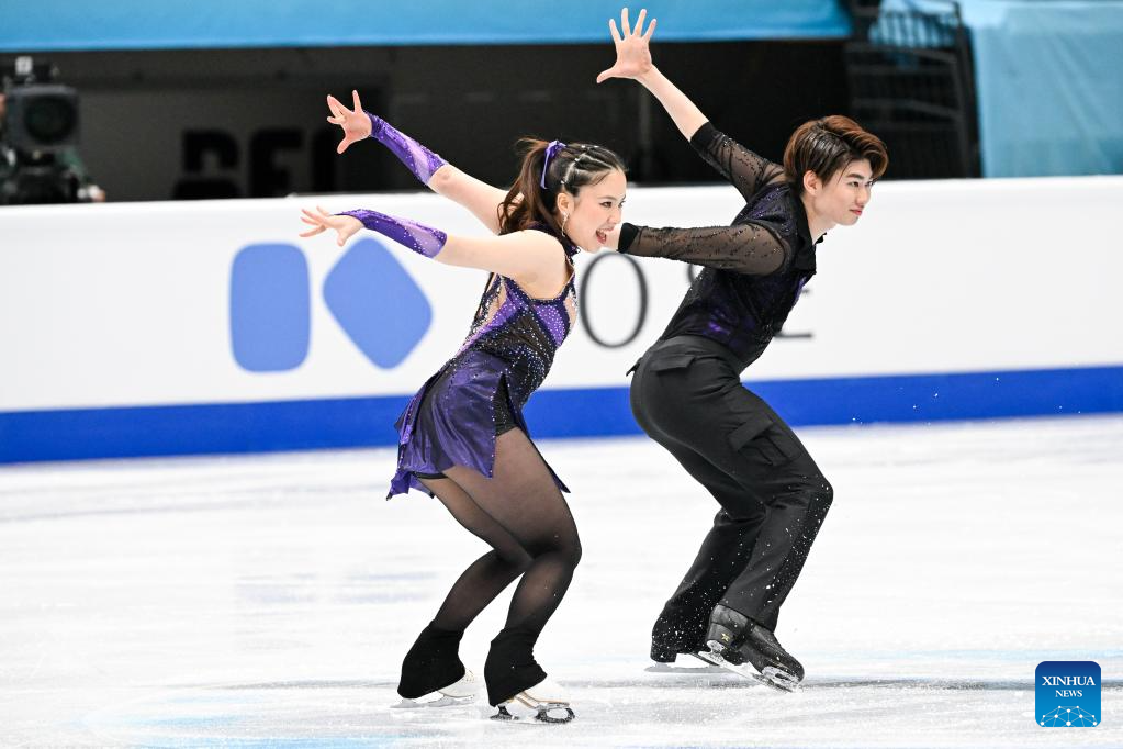 Wang Shiyue (L) and Liu Xinyu of China perform during the ice dance rhythm dance at the ISU Four Continents Figure Skating Championships in Beijing, China, Jan. 22, 2026. (Xinhua/Ju Huanzong)