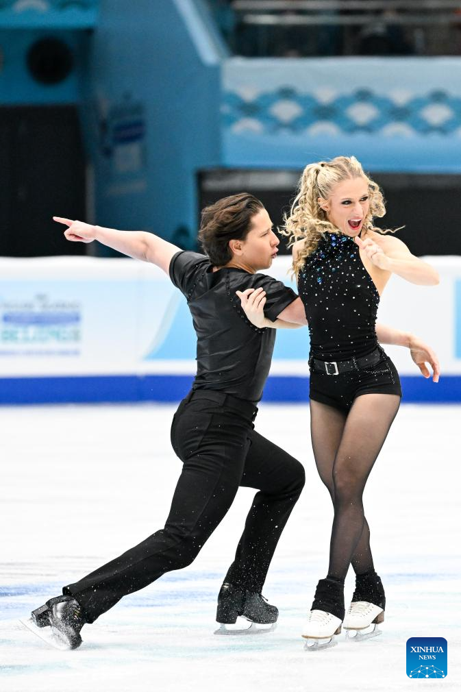 Emilea Zingas (R) and Vadym Kolesnik of the United States perform during the ice dance rhythm dance at the ISU Four Continents Figure Skating Championships in Beijing, China, Jan. 22, 2026. (Xinhua/Ju Huanzong)