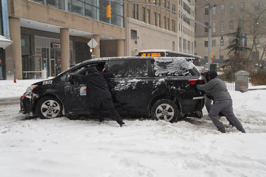 NEW YORK, Jan. 27 (Xinhua) -- Several dozen people died and hundreds of thousands remained without power on Tuesday after a massive winter storm dumped snow and ice from the U.S. Northeast to the South over the weekend.