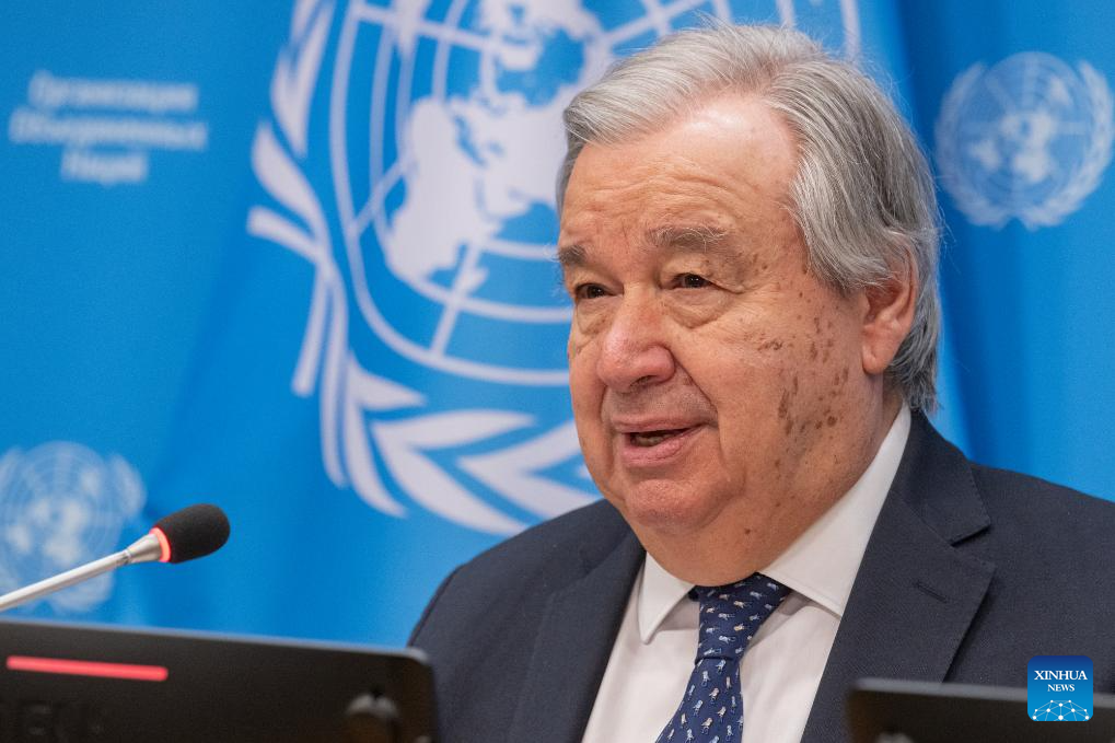 UN Secretary-General Antonio Guterres speaks at a press briefing at the UN headquarters in New York, Feb. 4, 2026. Guterres said Wednesday that he has submitted to the General Assembly the composition of a new international scientific panel on artificial intelligence. (Manuel Elias/UN Photo/Handout via Xinhua)