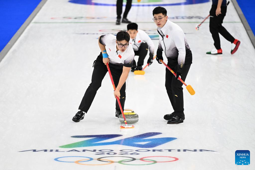 CORTINA D'AMPEZZO, Italy, Feb. 16 (Xinhua) -- China secured its first round-robin win by defeating host Italy in the eighth session of the men's curling competition at the Milan-Cortina Olympic Winter Games here on Monday.