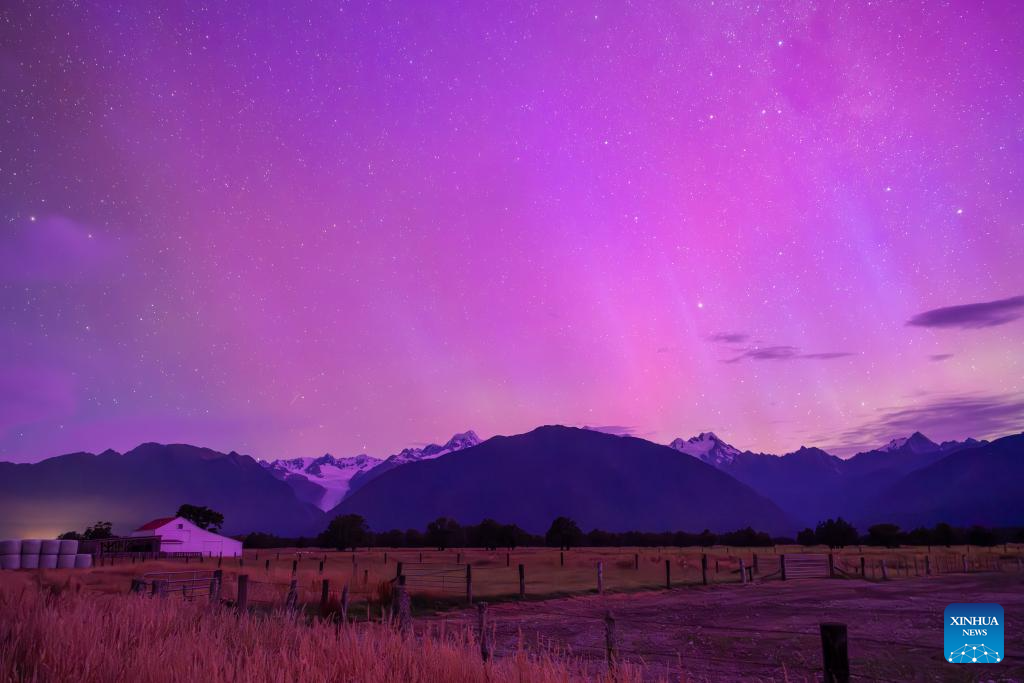 The aurora is seen near the Fox Glacier of New Zealand's South Island, Jan. 20, 2026. (Photo by Yang Liu/Xinhua)